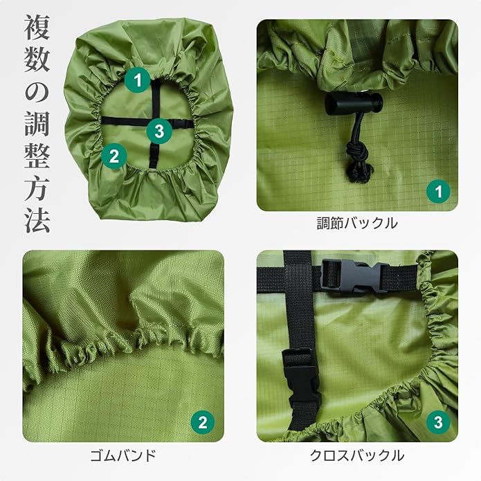 【マルチサイズ選択】本製品は10-80Lの異なるサイズのバックパックに対応する4つのサイズオプションがあり、ランドセル、ビジネスバッグ、カジュアルバッグ、登山バッグなど様々なタイプのバックパックに適しています。