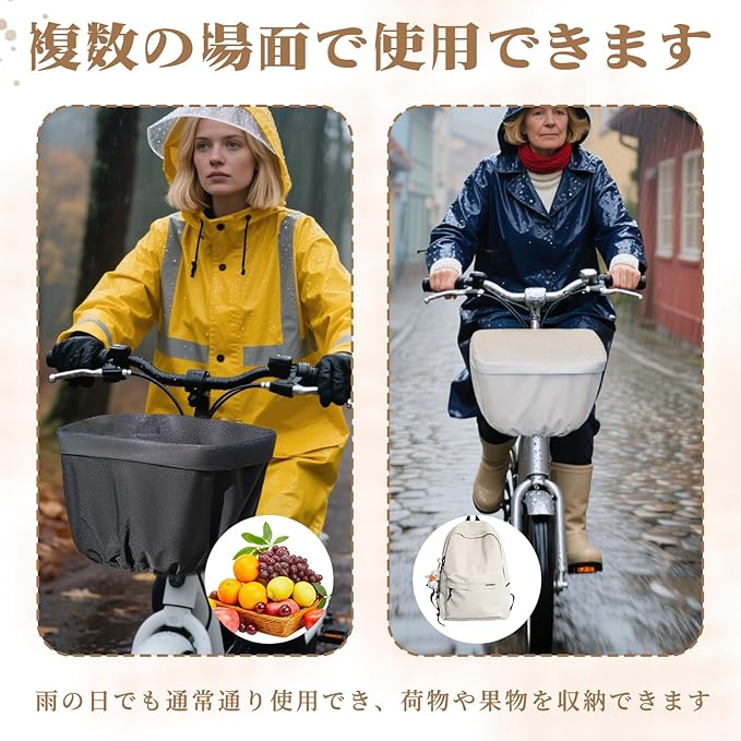 【防水素材で雨の日】自転車用防水カバーは高品質な防水素材を使用しており、雨の日でも荷物をしっかり保護。濡れや汚れを気にせず、通常通り使用できます。