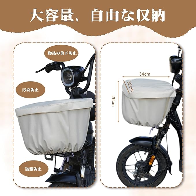 大容量で安全な収納:34cm 32cm 26cmの広いスペースを備え、荷物や果物などを自由に収納できます。物品の落下防止、汚染防止、盗難防止設計で、安心してご利用いただけます。
