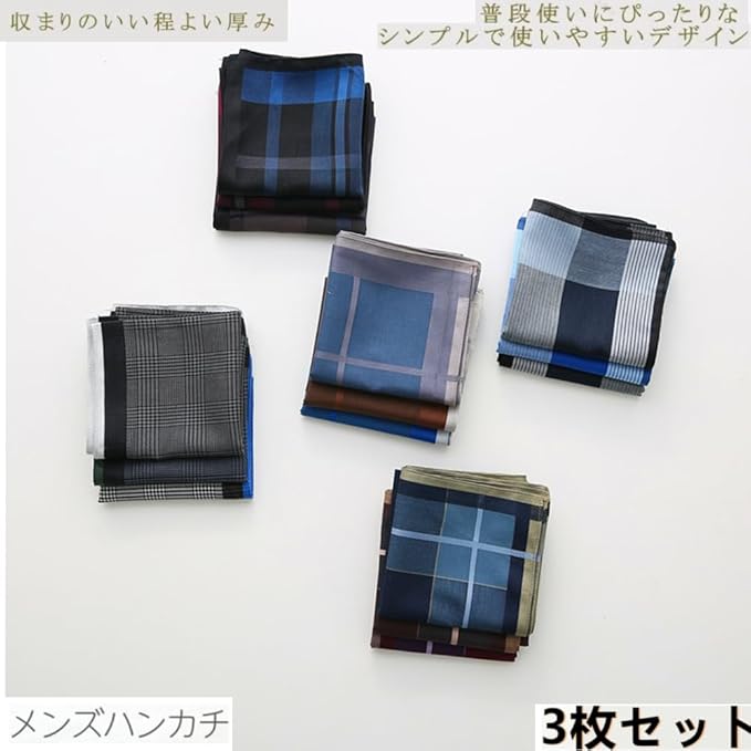 [SLASHJP] ハンカチ メンズ 選べる 新柄 綿100% 紳士 ビジネスマンハンカチ はんかち 父の日 ギフト 通勤 ビジネス 43*43 大判 Handkerchief 3枚/6枚セット 【商標 第2019-029628号】 | funshop