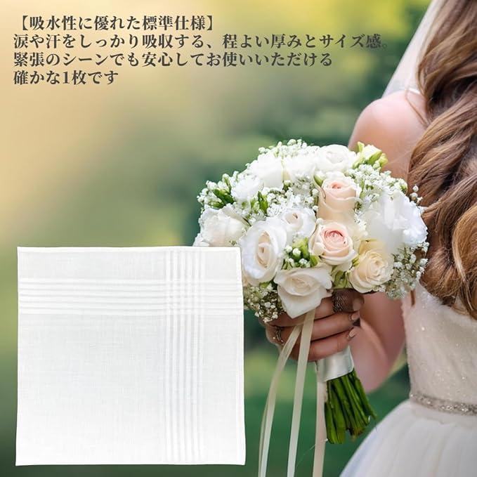 [Tsumulie] ブライダルハンカチ 白 結婚式 【3枚 セット】 薄手 ハンカチ レディース 2枚 メンズ 1枚