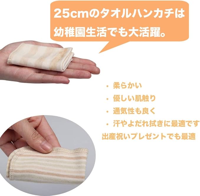 汗やよだれを拭くのに最適で、保育園でも活躍します。