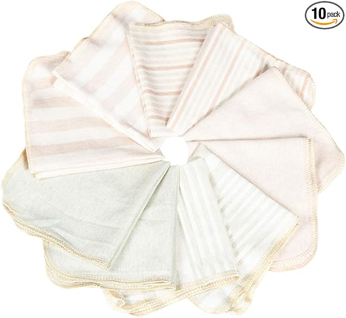 [MOMSMENU] ハンカチ 赤ちゃん ベビータオル オーガニックコットン 柔らかい ベビービブ 25x25㎝ 10枚