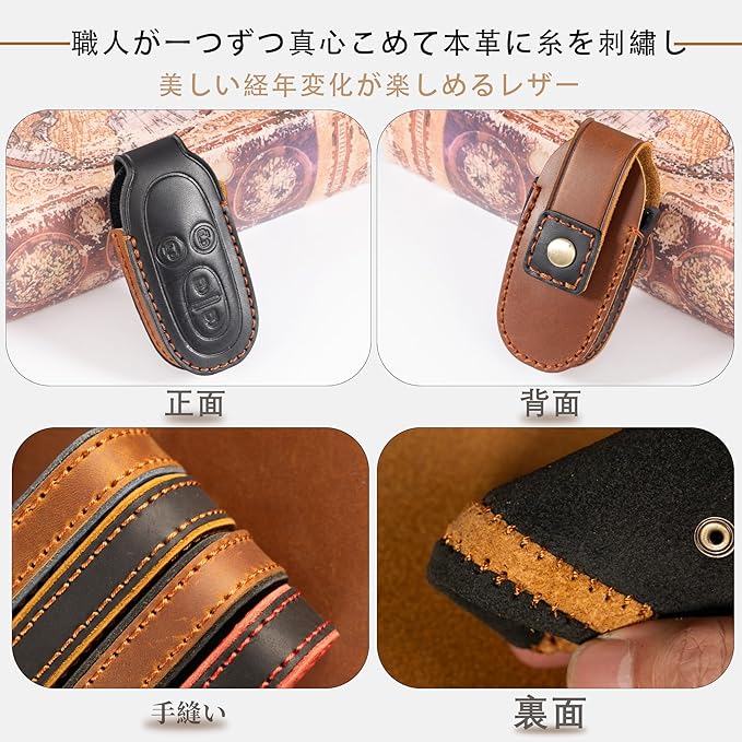 [PIMOHI] ソリオ キーケース 本革 ルークス ハスラー ラパン パレット キーカバー ワゴンR スティングレース レザー スマートキーケース 軽量