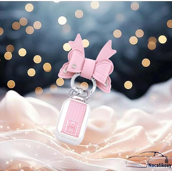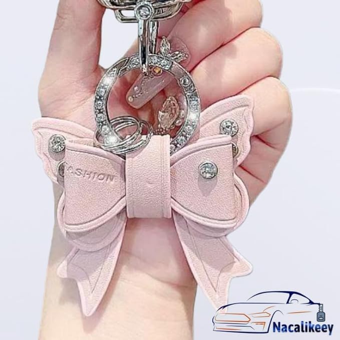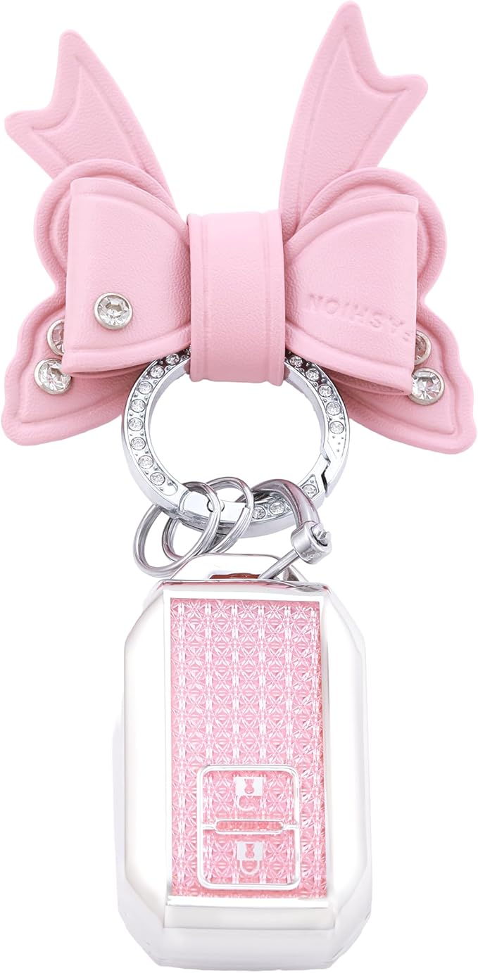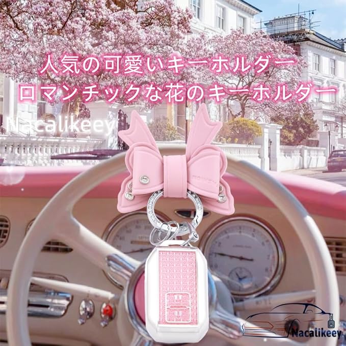 【Nacalikeey】キーケース適合スズキクロスビー 新型 ジムニー JB64W 新型 ジムニーシエラ B74W・ 新型ハスラー 新型ソリオ SOLIO/ソリオ バンディット 可愛の蝶々デザインキーケースきらめき キーカバー華やかなスタイルわいいキーケース キーホルダー 女性向け ギフト(2ボタン,ピンク)