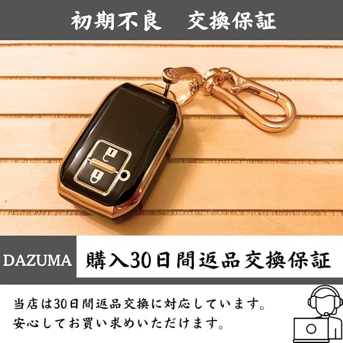 [DAZUMA] キーケース キーカバー スズキ 2ボタン 新型 ジムニー JB64W JB74W 新型 スイフト 新型 ワゴンR スマートキーケース 全面カバー 車 キー カバー (金縁 ブラック)