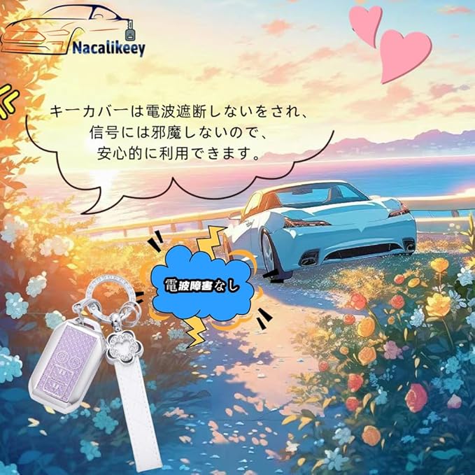 【遮断しない】キーカバーは電波遮断しないをされ、信号には邪魔しないので、安心的に利用できます。花の形、おしゃれでかわいい!