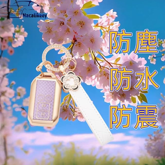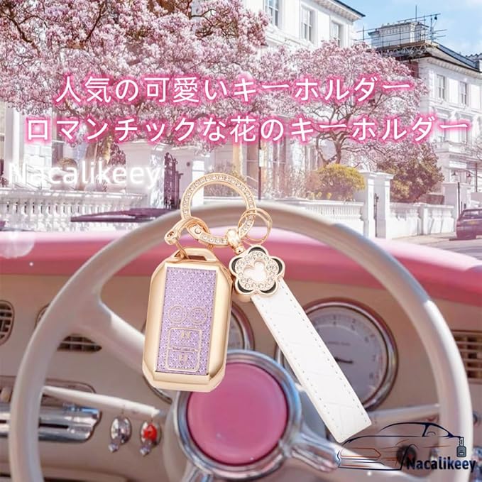 [Nacalikeey] 梅の花 キーケース適合スズキの車種和桜の舞新型ソリオ SOLIO 新型ハスラーキーケース かわいい女の子可愛いキーケースカバー夢幻貝ガールキーホルダー(ゴールドパープル)