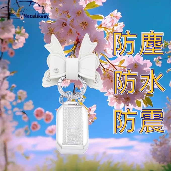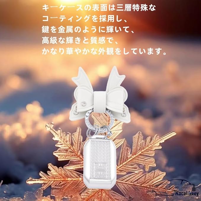 【Nacalikeey】キーケース適合スズキクロスビー 新型 ジムニー JB64W 新型 ジムニーシエラ B74W・ 新型ハスラー 新型ソリオ SOLIO/ソリオ バンディット 可愛の蝶々デザインキーケースきらめき キーカバー華やかなスタイルわいいキーケース キーホルダー 女性向け ギフト(2ボタン,ホワイト)