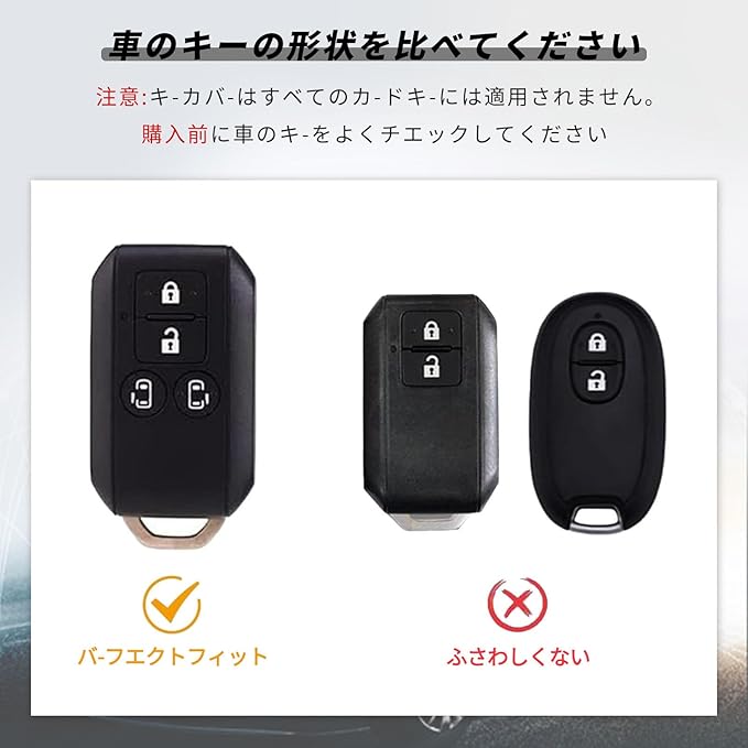 【適応車種】スズキ/suzuki専用 キーケース。新型ジムニー スペーシアカスタム フレアワゴン ソリオ リモコン に適合する。スマートキーとボタンの形状を必ずご確認ください(写真2枚目参照)。スマートキーの形状は、同じモデルでもモデルによって異なる場合があります。形状が合えば、上記以外の車種でも取り付け可能です。