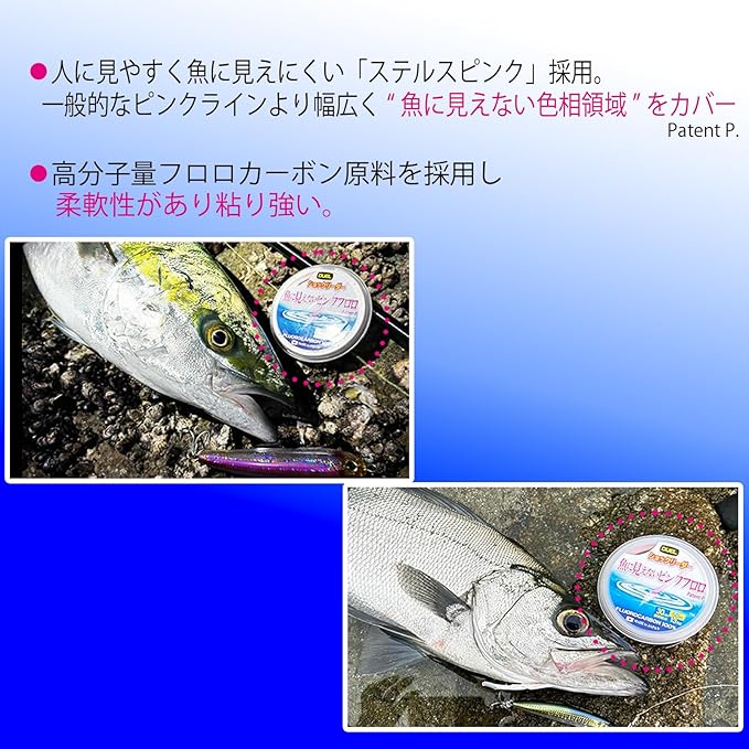 ◆人に見やすく魚に見えにくい「ステルスピンク」採用、一般的なピンクラインよりも幅広く”魚に見えない色相領域”をカバー
