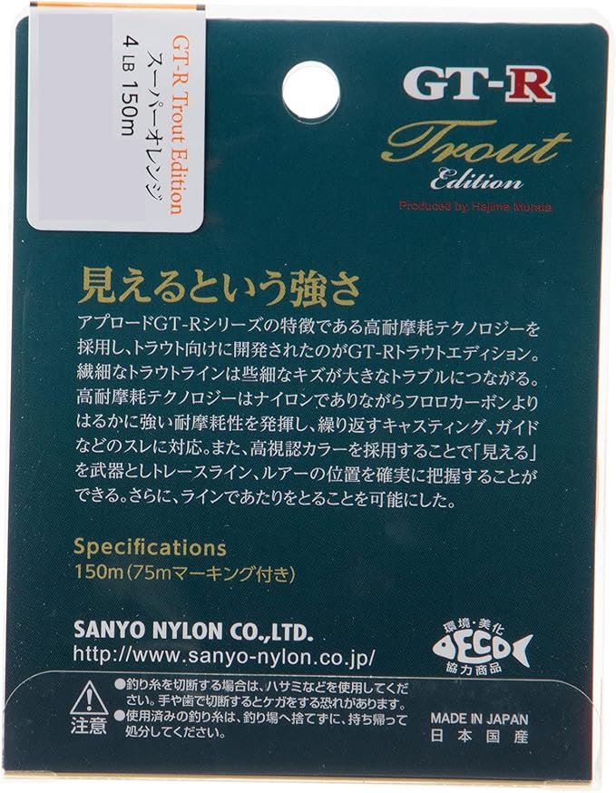 カラーバリエーション豊富なアプロードGT-Rトラウトエディションに、東北、北海道のエキスパートアングラーにもお使いいただける本格的ネイティブラインが追加発売! ラインカラーは自然環境の中で高視認性を確保する蛍光ブルーカラーを採用し、全天候、全水質色、各偏光サングラスに対応。サイズも3lbから本流域に対応する8lb~12lbを特別追加ラインナップ。