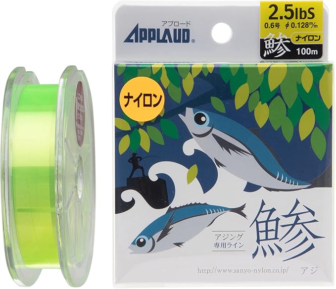 【APPLAUD 鯵ナイロン アジング専用ライン】 アジをルアーで釣ってみませんか? 大漁に釣るか、1匹を如何に釣るかの選択はあなた次第! ライトフィッシュの繊細なアタリがわかる扱い易さを追求! 繊細な引きをダイレクトに愉しむことができるリアルフィーリング設計! 新構造・新特殊種耐摩樹脂加工を加え、スーパーパワーでスレを防御! 闇夜でも見やすい蛍光イエロー