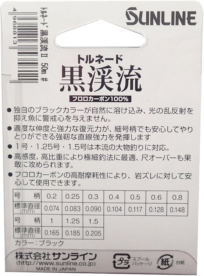 サンライン(SUNLINE) フロロカーボンライン トルネード黒渓流2 50mブラック