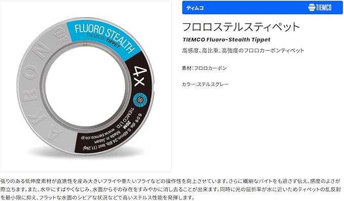 高感度、高比重、高強度のフロロカーボンティペットに高いステルス性能を持つティペット!