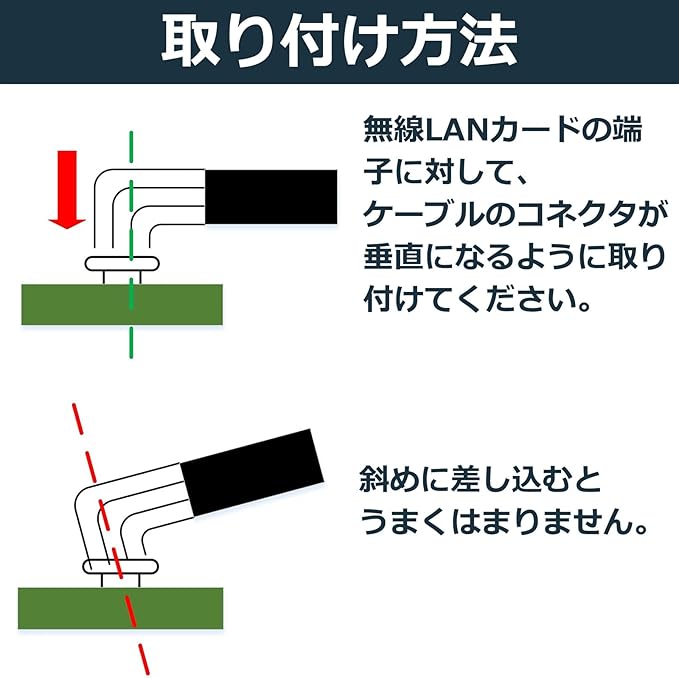 【非対応機種】Intel AC7260、6235などU.FLコネクタ採用の旧世代無線LANカードには対応していません。ご購入前に必ずご利用のカードのコネクタ形状をご確認ください。