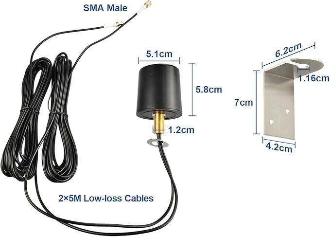 ✅ パッケージ内容:600Mhz-6000Mhz アンテナx1個+5Mケーブル 付き+取り付け金具セット