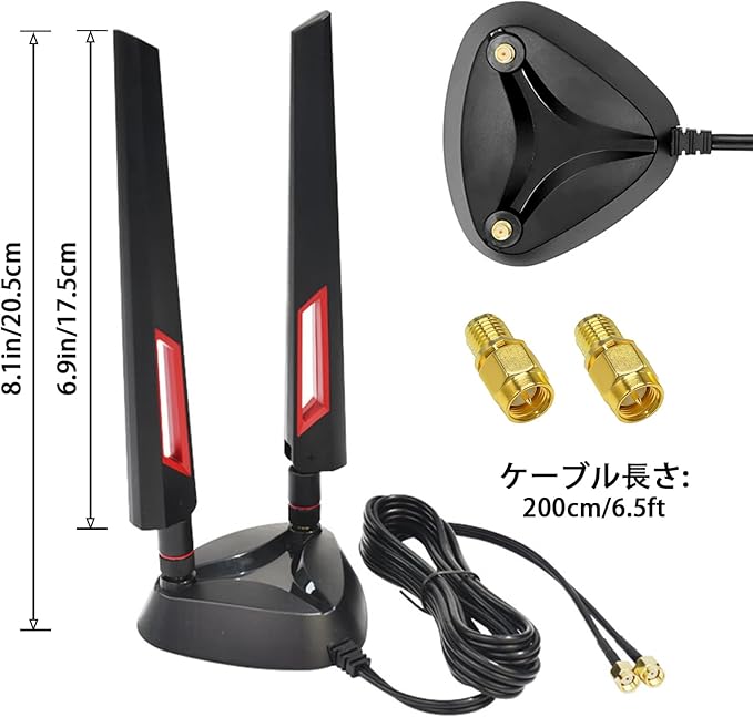 WiFi 6E アンテナ トライバンド WiFi 6GHz 5GHz 2.4GHz アンテナ RP-SMA WLAN マグネットベース 2m/6.6フィート延長ケーブル付き PC Bluetooth マザーボード WiFi 6 ルーター カメラ PC デスクトップ