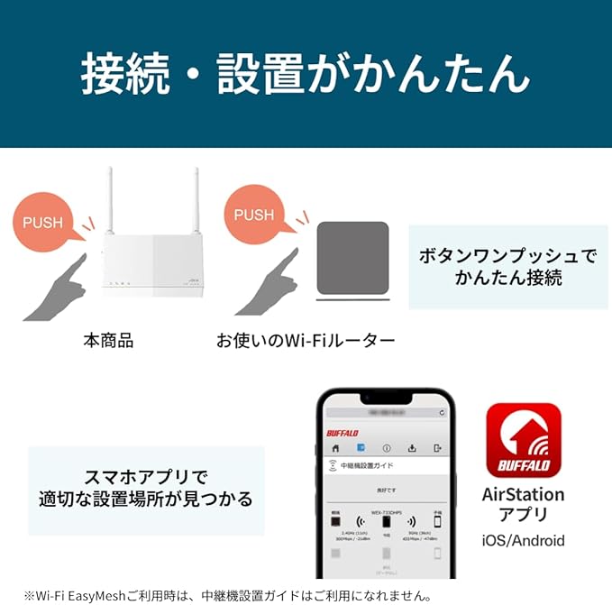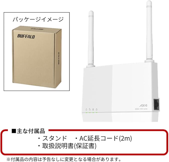 【Amazon.co.jp限定】バッファロー WiFi 無線LAN 中継機 Wi-Fi 6 11ax AX3000 2401+573Mbps WPS ワイドバンド メッシュ EasyMesh コンセント直挿し/据え置き 外付けアンテナ 日本メーカー エコパッケージ WEX-3000AX4EA/N