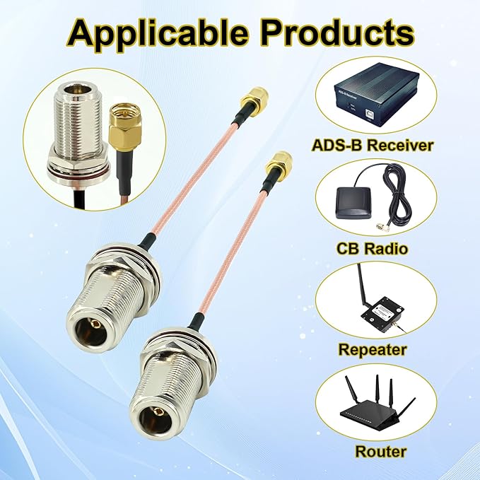 用途:ルーター、Wi-Fi無線、GPSアンテナ、ADS-B受信機、アマチュア無線、リピーター、アマチュア無線など