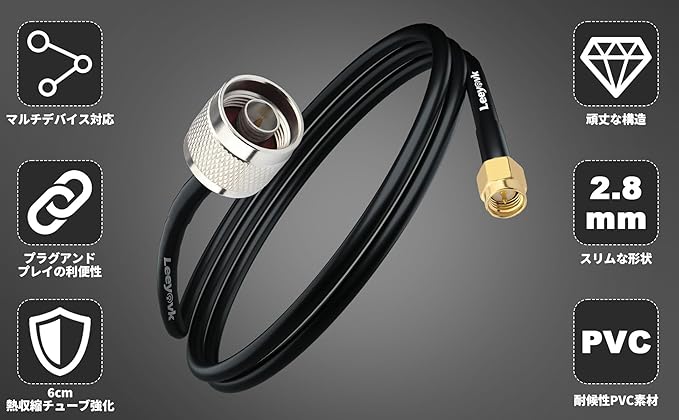 【パッケージ内容】SMAオス‐Nオス RG58 デジタルRF同軸ケーブル 100cm 1本。簡単インストール:leeyovk の同軸ケーブルは扱いやすい設計で、工具なしで簡単に接続できます。プラグするだけで安定した信号伝送が可能になり、複雑な作業は不要。初めての方でも安心してお使いいただけます。