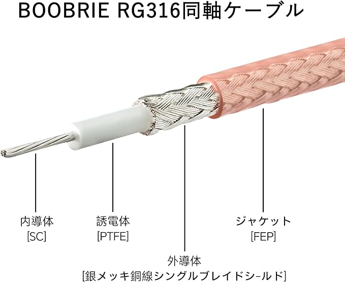 ✿BOOBRIE RG316同軸ケーブルは、そのFEP外部ジャケットにより、はるかに低い温度耐性と高い温度耐性を備えています。RG174/RG58より細い、柔らかい特性を持って、スペースが大きく取らない、細かいところの配線もしやすいです。軽量であるため、設置や移動が便利です