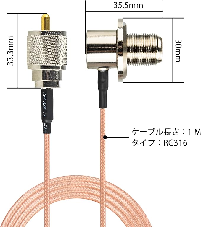✿タイプ:UHFメス - UHFオス(MP⇔SMAP) | 長さ:1M | 材質:接続性に優れた純銅(合金なし) | 表面処理:ニッケルメッキ/金メッキ仕上げ|インピーダンス:50オーム、低損失 | 耐久性:800回嵌合(以上