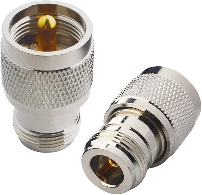 【用途】:UHFオスコネクタからNメスへ端子形状を変換するコネクタです。アンテナを延長することもできます。アンテナ、伝送、無線、Wi-Fi、テレコム、同軸ケーブル、LMR、WLAN機器、CCTV、マイクロ波アプリケーション、デジタル通信システム、その他多くのアイテムへの接続に適しています