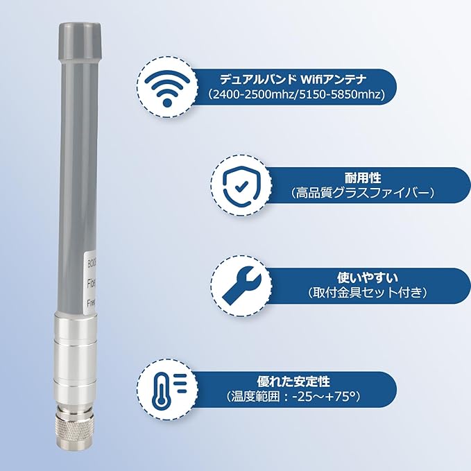 ✿使いやすい。3dBiはコンパクトな設計を活かし、近距離やスペース制約のある場所に適します。軽量で取付金具セットも付き、わずか5分で簡単に設置ができます。
