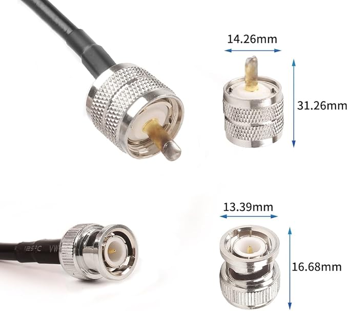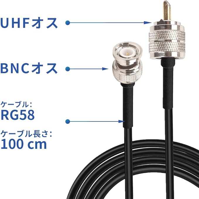 M型 BNCオス ケーブル UHFオス⇔BNCオス コネクター 高耐久 アンテナラジオケーブル 同軸変換ケーブル アンテナ延長線 RG58 1m同軸ケーブル
