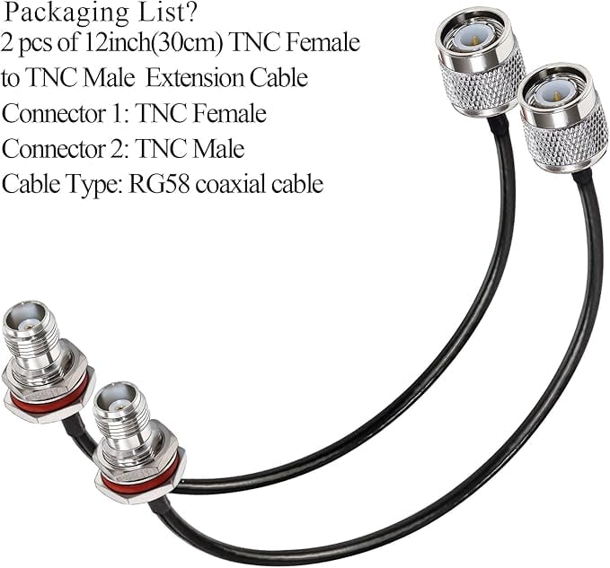 パッケージ内容: TNC オス - TNC メス RG58 延長ケーブル 2 本 (コネクタ 1: TNC オス、コネクタ 2: TNC メス)