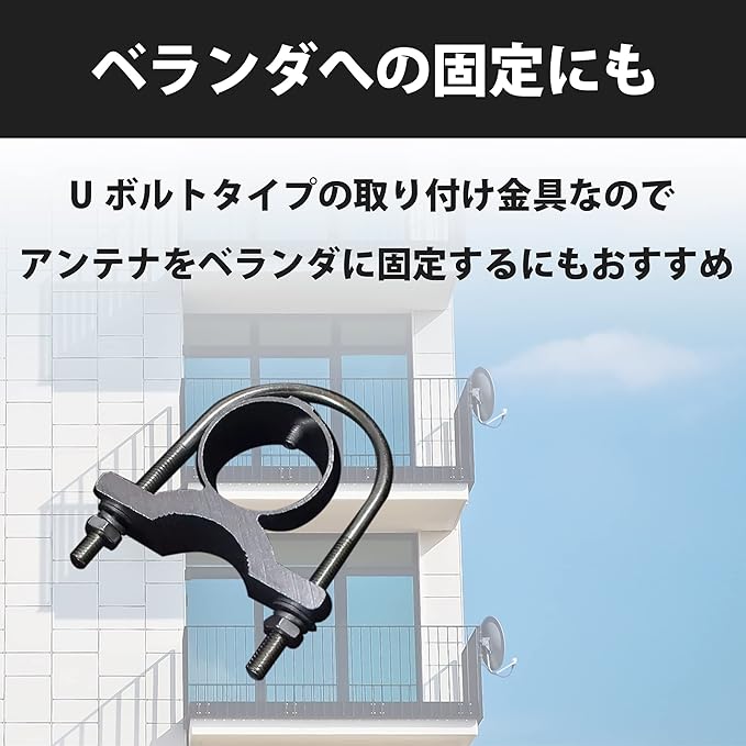 ベランダに固定したい場合にも:Uボルトタイプの取り付け金具なので、さまざまな場所に取り付けることができます。アンテナをベランダに固定したい場合にもおすすめです。
