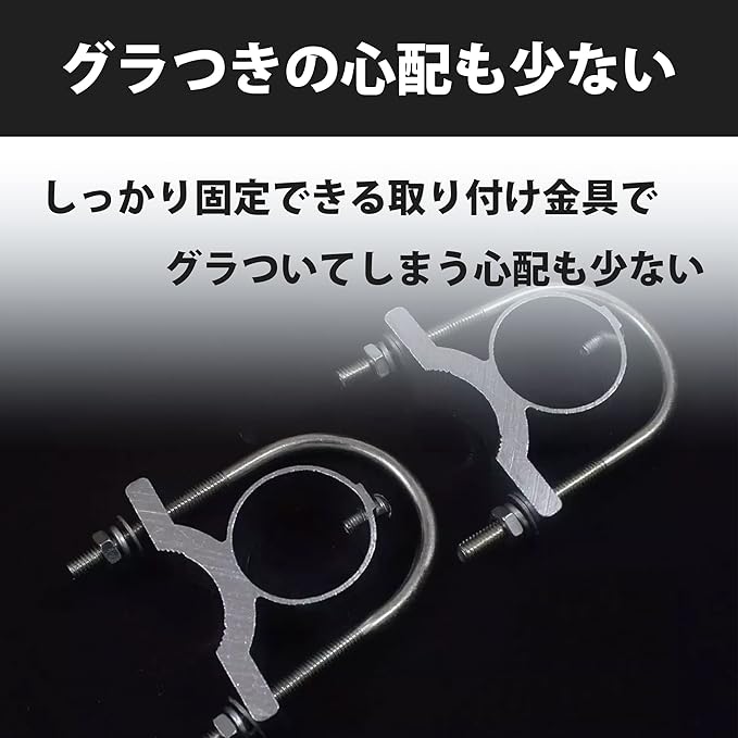 リング部分の内径は約33mm:こちらの取り付け金具のリング部分の内径は約33mmとなっています。Uボルトタイプの金具なので、初心者でも取り付けしやすいです。