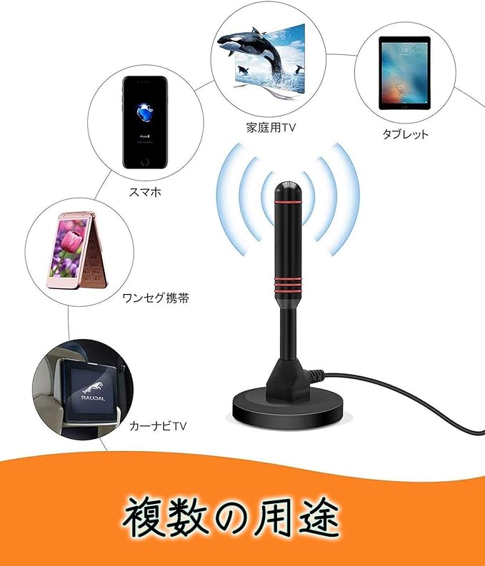 【複数の用途】ワンセグ携帯、スマホ、タブレット、カーナビTV、家庭用TV。このアンテナは、車のテレビと家庭用テレビ用に設計されています。地デジ アンテナ 車、また、タブレットやスマートフォンといった各種デバイスにも、3.5㎜端子変換ケーブルを使えば簡単に接続が可能です。 この場合は、変換ケーブルを要しますので、お手元の製品の端子をお確かめください。