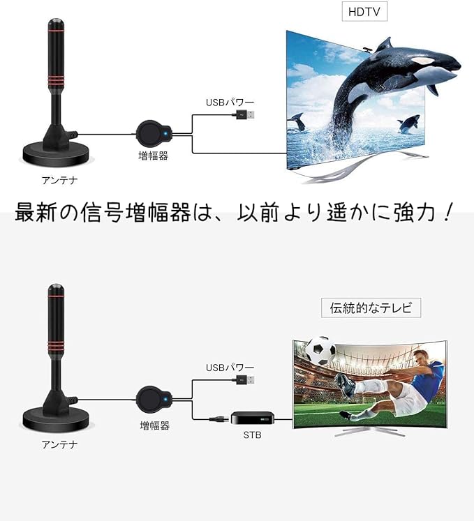 【受信チャンネル数が多い】高感度受信アンテナ、ブースター内蔵 アンテナ 、テレビブースター、利得性能の高さから、他社の製品に比べてアンテナの受信強度が格段に高いため、より鮮明な画像を出力することができます。 映画を楽しみたい方には、とくに画面の結像の質は重要ですので、ご利用になった方には大変喜ばれています。 地形や中継局までの距離などで受信強度に差が出てくることがあります。