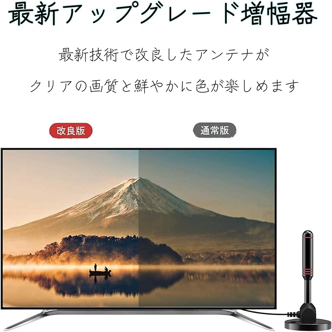 【ハイビジョン】174 230mhz/470 882 mhzの大きな受信周波数範囲を持ち、30dbiのアンテナ利得は紙製アンテナの2.5倍、最新世代チップを集積した強力な信号増幅器で、改良された4Kアンテナはより鮮明な画像を実現でき、より低いノイズレベルを持つ。