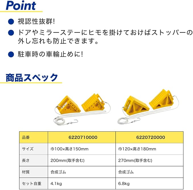 pa-man タイヤストッパー ダブル 黄色 2ヶ1セット 取手付 合成ゴム製 車輪止め BP19YW