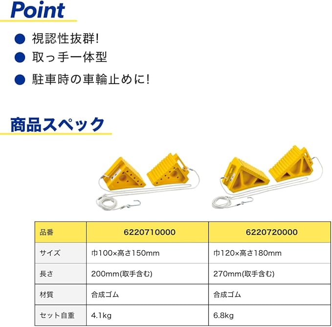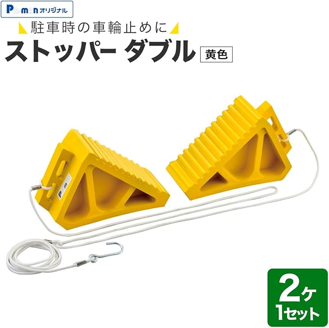 pa-man タイヤストッパー ダブル 黄色 2ヶ1セット 取っ手一体型 合成ゴム製 車輪止め BP31YW