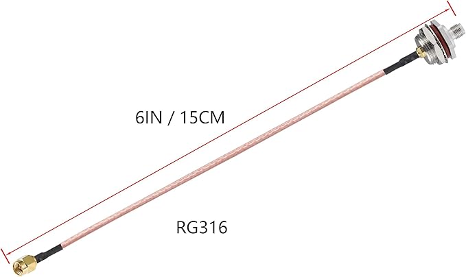 コネクタ1:SMAオスプラグストレート | コネクタ2:SMAメス防水ボックス M16 | ケーブルタイプ:RG316 | ケーブル長:6インチ /15センチメートル | インピーダンス:50オーム