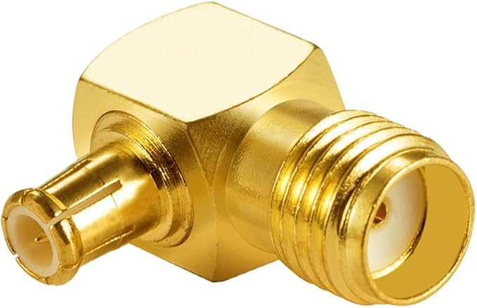インピーダンス:50オーム|素材:真鍮、金メッキ|アダプター接続:SMAメス-MCXオス|型:90度直角型