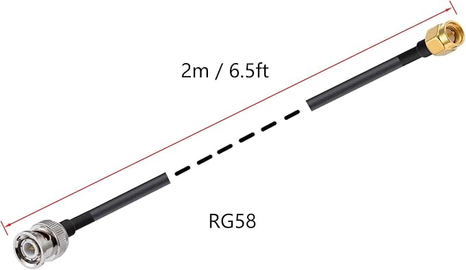 コネクタ1:SMAオスプラグストレート | コネクタ2:BNCオスプラグストレート | ケーブルタイプ:RG58 | ケーブル長:6.5フィート/2メートル | インピーダンス:50オーム