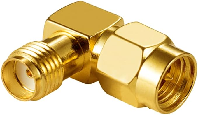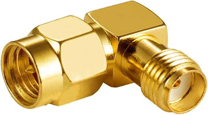 市販の SMA シリーズ向けアダプターで、90度直角型 SMA コンバーターアダプターです。アンテナを曲げることなくアンテナと接続できます
