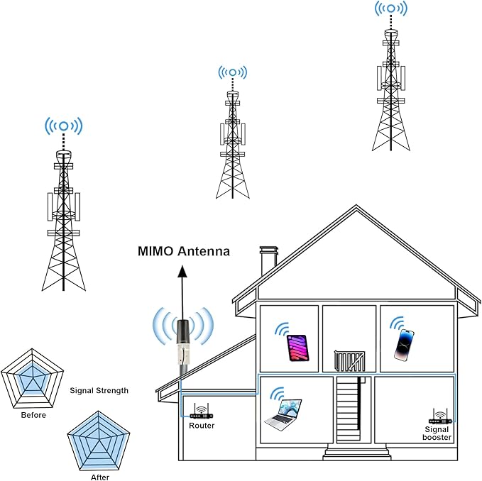 ✿無指向性だから、面倒な角度調整なしでOKです。360度受信で、郊外や山間部での「電波弱い…」の悩みを解消し、狭い部屋でも、すぐに4G信号/2.4ghz wifiをパワーアップ!