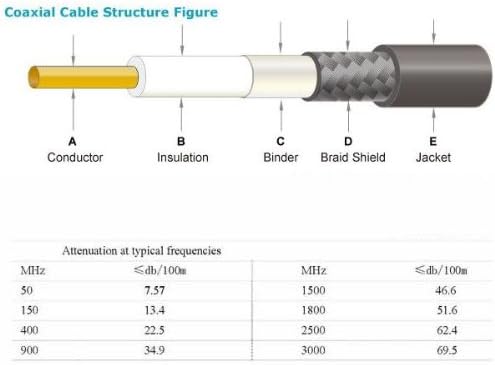 2.4Ghz帯1メートル当たりのケーブル損失0.624dB 5メートルで3.12dBの損失