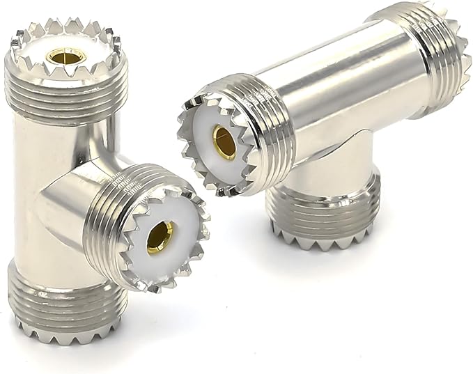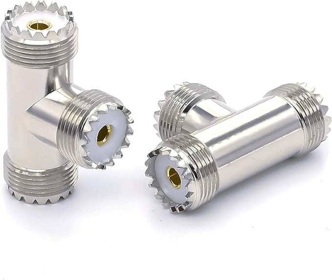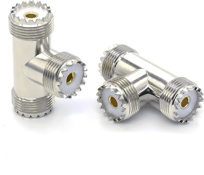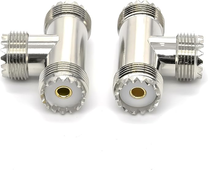 パッケージ内容: UHF メスからデュアル メスへの T 字型スプリッター同軸コネクタ アダプター 2 個