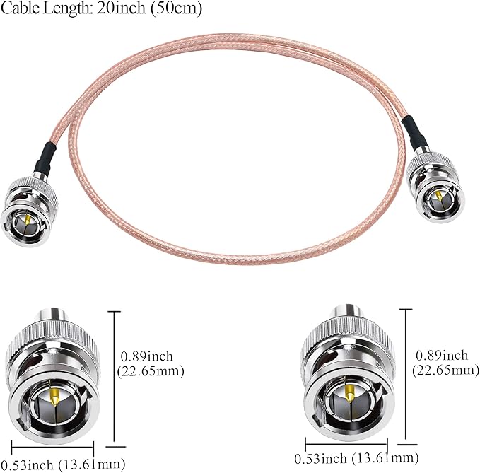 ケーブルの種類と詳細: BNC ケーブル、アダプタの種類: BNC オス オス、ケーブルの種類: 同軸 RG179、材質: ニッケルメッキ、ケーブルの長さ: 20 インチ (50 cm)、インピーダンス: 75 オーム、低損失