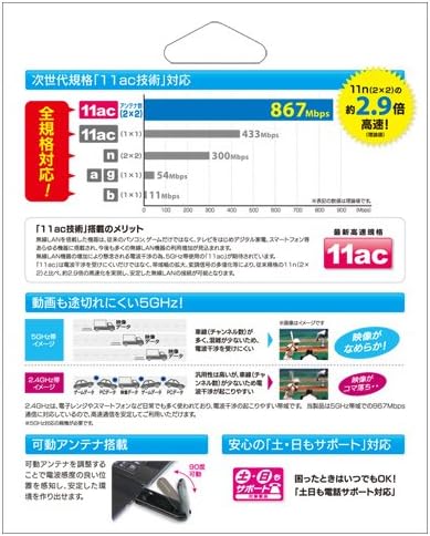[スピード] 867Mbps(11ac)、300Mbps(11n)、54Mbps(11a,11g)、11Mbps(11b)