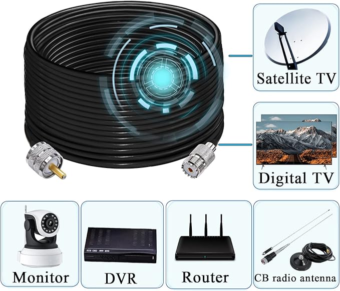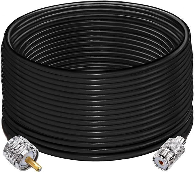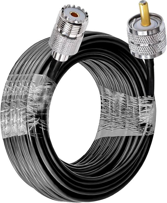 RG58 PL259 UHF CBラジオ同軸ケーブル、低損失UHFオス-SO239メス延長、PL-259アンテナジャンパーケーブル49.2フィート(15メートル)、CBラジオ、アマチュア無線用