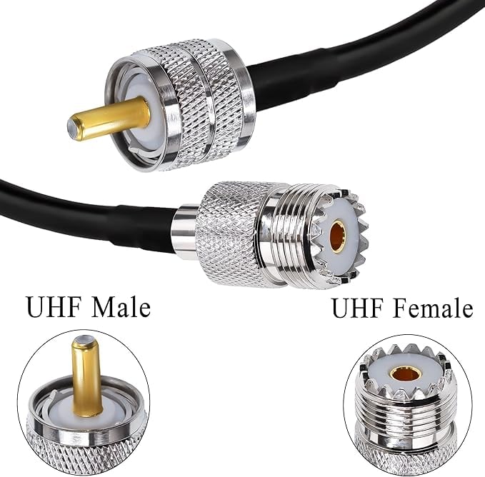 パッケージ内容: SO239 UHF メス - UHF オス RG58 同軸ケーブル 1 本 (コネクタ 1: UHF メス コネクタ、コネクタ 2: UHF オス コネクタ)