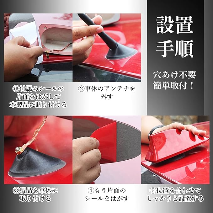 ✅【簡単取り付けでスタイリッシュに!】純正のポールアンテナをシャークアンテナに交換するだけで、愛車をオシャレにカスタマイズ!手軽に高級感が増し、スッキリとしたスタイルに仕上がります。ポールアンテナを外し、アンテナボス部にケーブルを接続します(ケーブルが2つの場合は両方を取り付ける)。両面テープを使ってシャークアンテナをカバーに被せるだけで、取り付けは完了です!純正のポールアンテナに比べて、スタイリッシュで防水性のあるシャークアンテナは、車の外観に魅力を加えます。